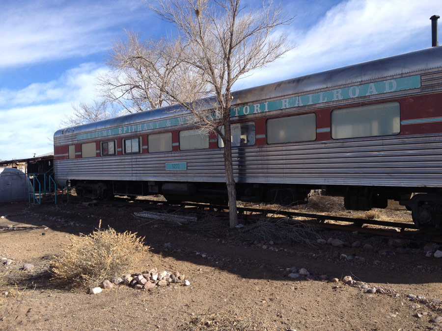 A retired 70 year old Amtrak railroad car converted into small living quarters in Socorro, New Mexico. More info. here.