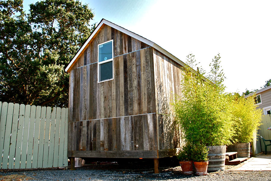 Stephen Marshall just recently finished hand-building a new unit called the “Barn Siding Studio”. It’s intended for use as an art gallery or art studio and is finished in recycled barn siding.