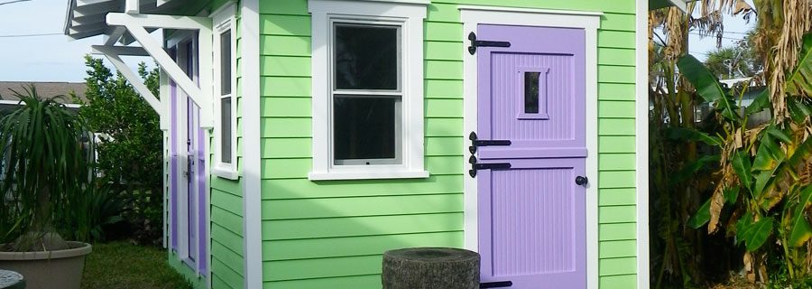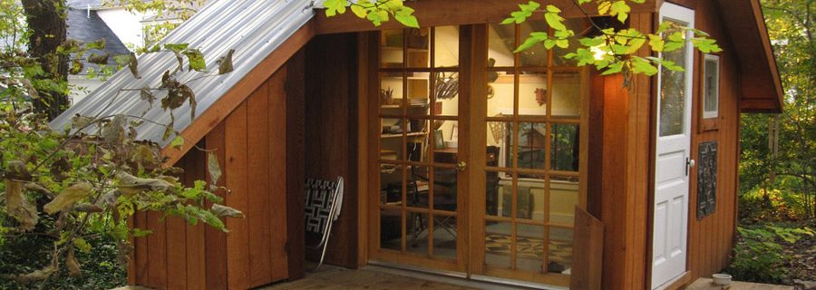 A small shed used as a tiny backyard sanctuary and creative energy.