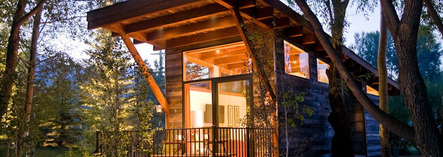 A lovely tiny cabin made from old timbers and delivered to its new home.
