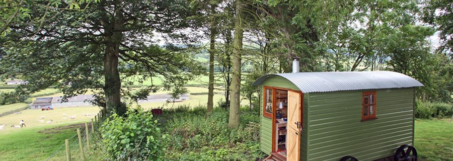 A small shepard’s hut resting peacefully on a hillside in the UK.