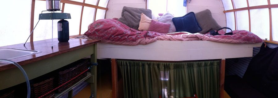 Tiny caravan built mostly from salvaged materials.