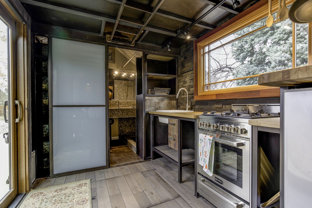 A custom tiny house on wheels in Denver, Colorado. More info. here.