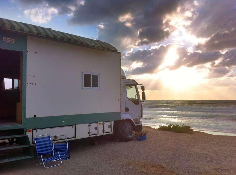 A work truck converted into a rolling home. Photos by Ilan Nachum. More info. here (translated).