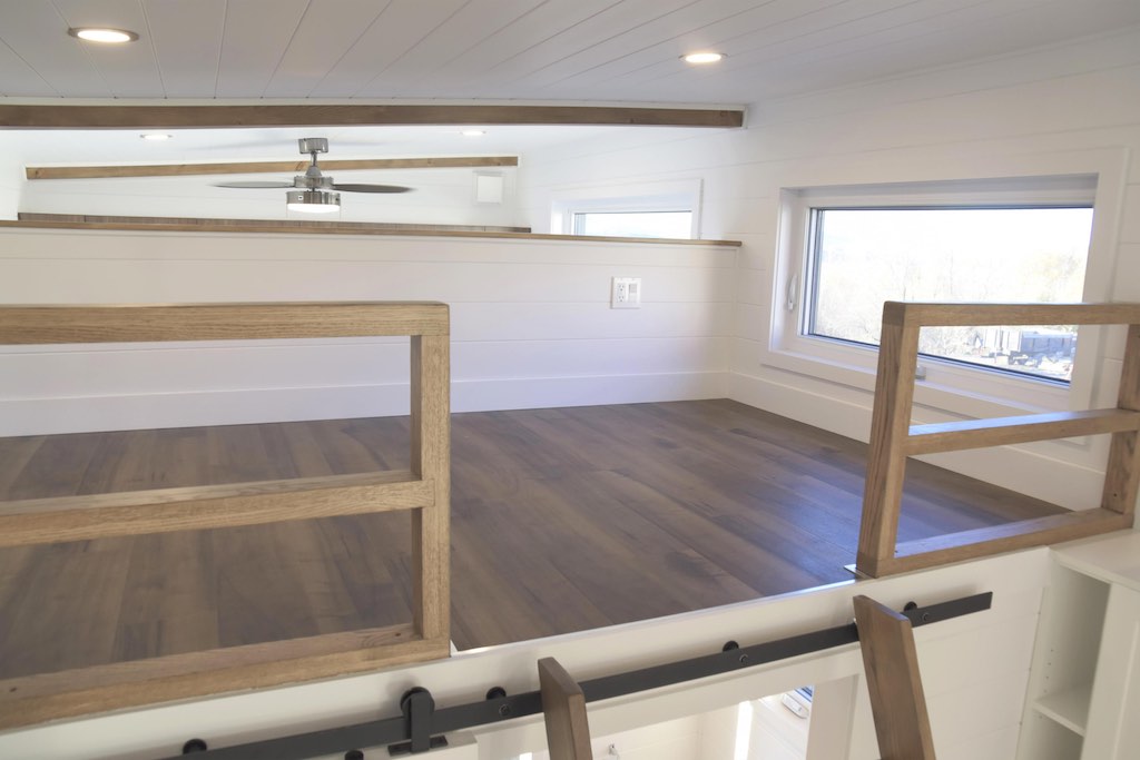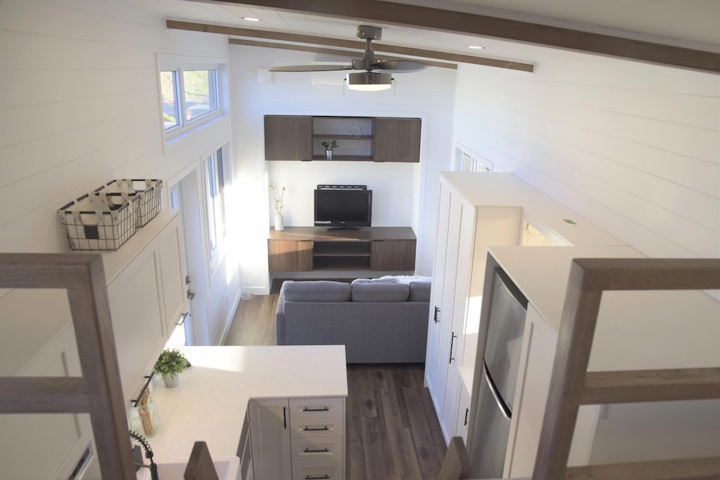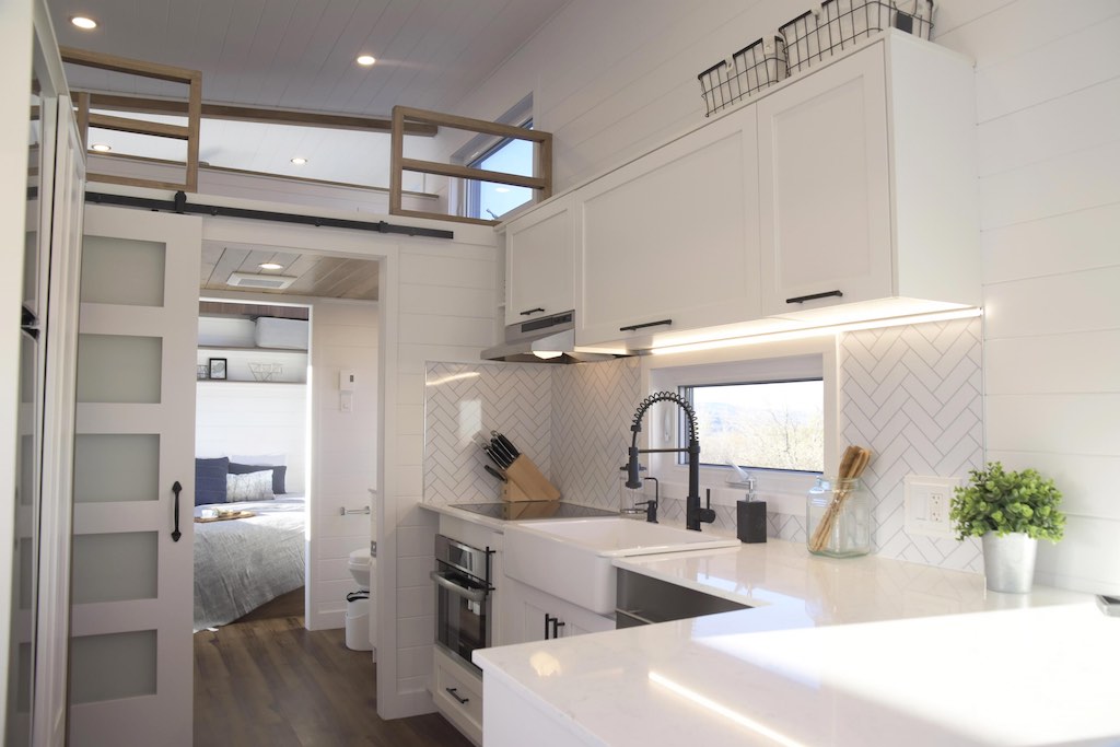 This is one of the most livable THOW’s I’ve seen. Anything with a ground floor bedroom gets my vote. The kitchen and eating bar is also just right for two.