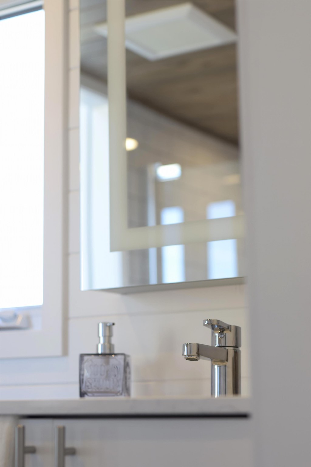 This is one of the most livable THOW’s I’ve seen. Anything with a ground floor bedroom gets my vote. The kitchen and eating bar is also just right for two.
