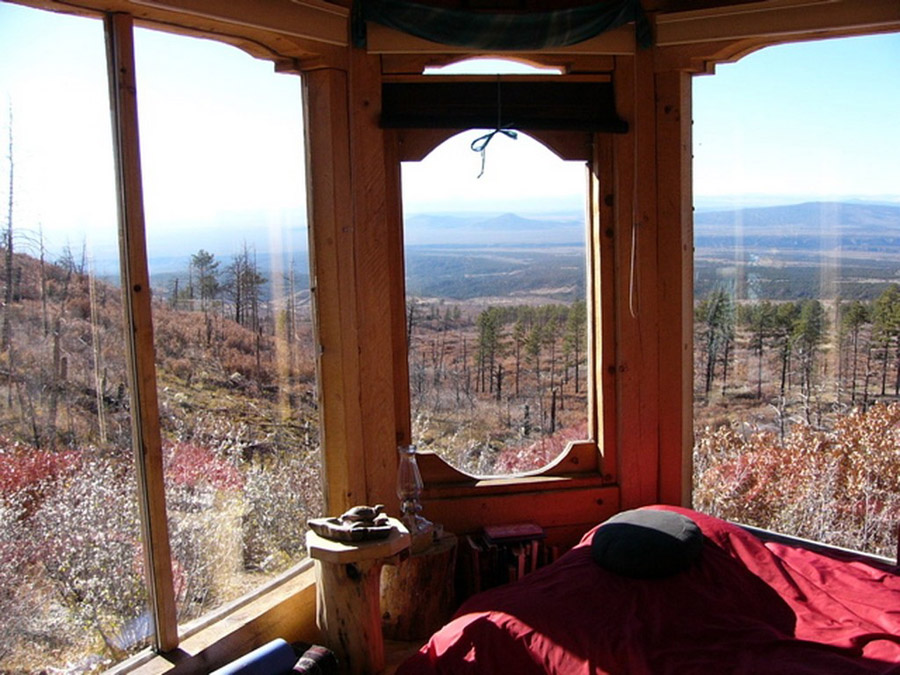 A tiny hermitage with a view at the Lama Foundation in San Cristobal, New Mexico.