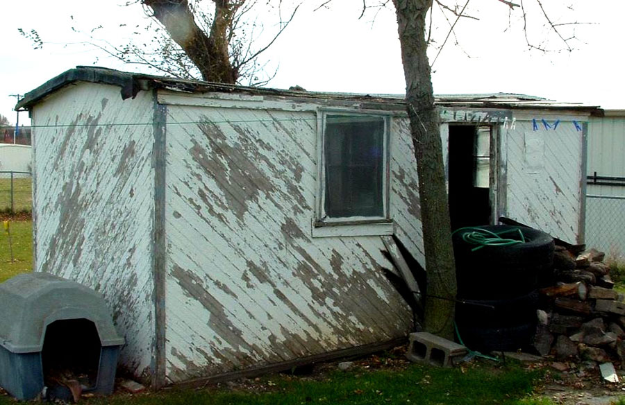 A tiny house from long ago, made from an old wooden railroad car circa 1930s. My great aunt lived in this little house for about 20 years until her death in the early 1950s. It still stands, but is in rough shape. This little house is located in Osmond, Nebraska.