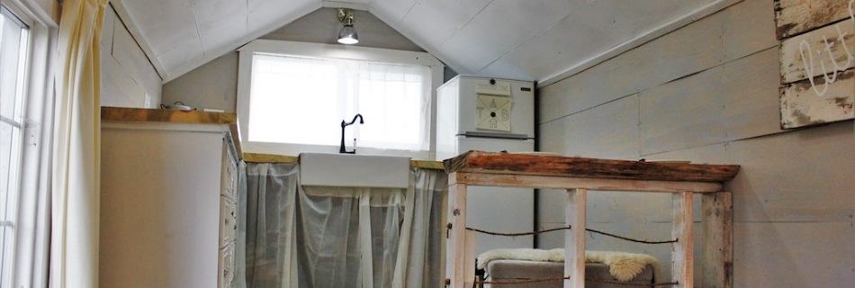 The Micro Mansion tiny house has a lot of features inside of it that immediately show you a lot of attention to detail was given. Like the wooden tub…nice.