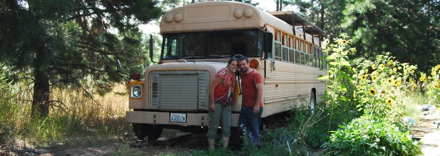 Living the simple life in a converted school bus.