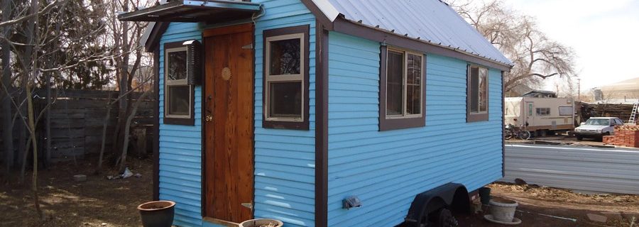 A tiny house on wheels in Albuquerque, New Mexico.