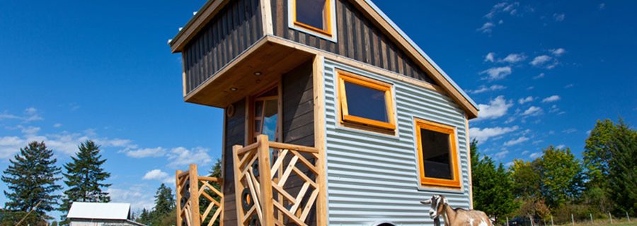 A tiny house on wheels with some unconventional features.