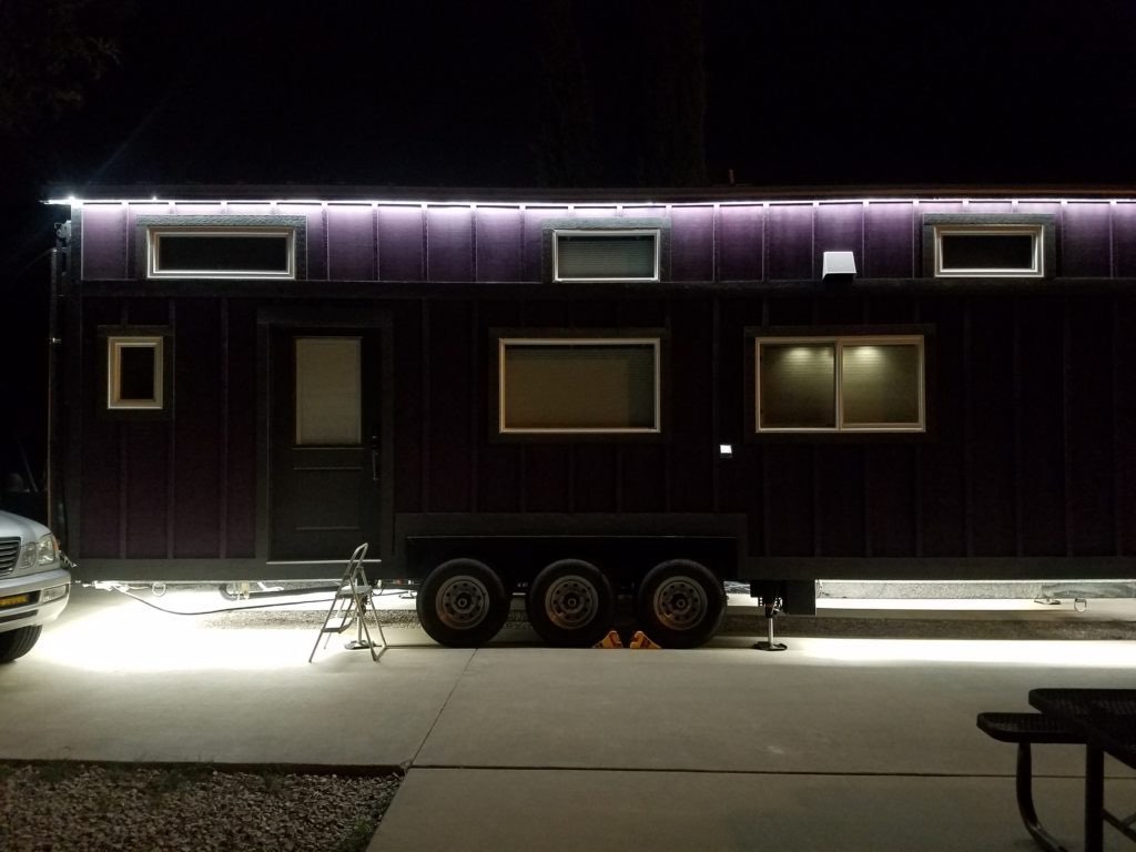 A custom-built house sitting on a 37′ Gooseneck trailer with air ride trailer suspension with 480 square feet of overall floor space including catwalk lofts. Built by Rocky Mountain Tiny Houses in Durango, Colorado.