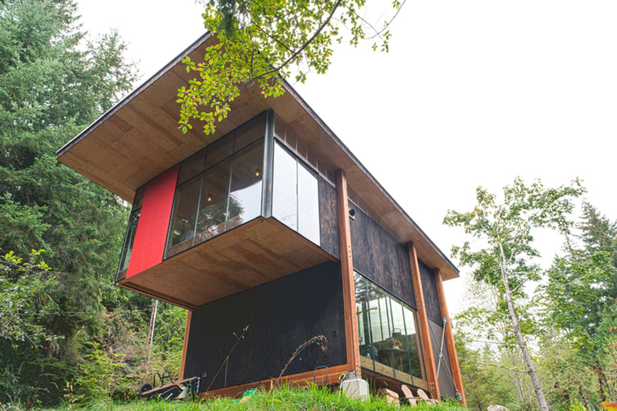 693 square feet studio partially made from scavenged materials and T1-11 plywood siding. Designed by Olson Kundig Architects. More info. here.