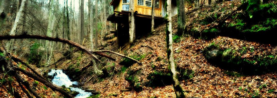 A naturally-built treehouse in the mountains of North Carolina.