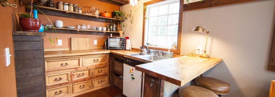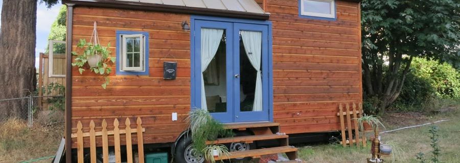 A tiny house that serves as guest accommodations in Portland, Oregon.