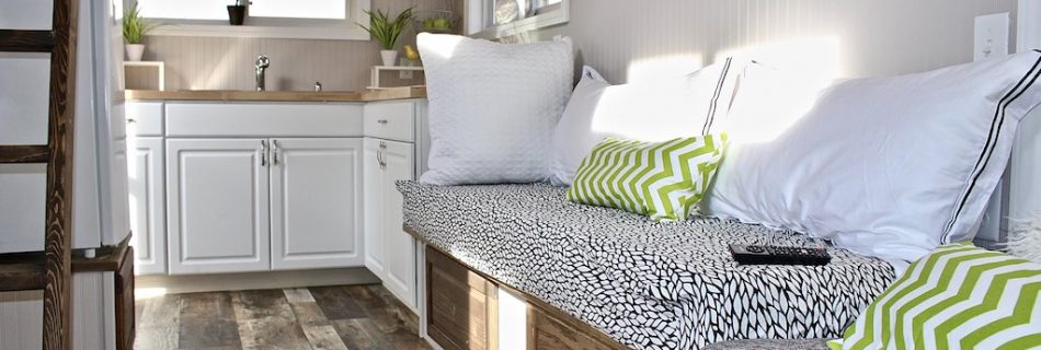 Chic Shack Lime Greenby tiny house listingstiny-housePosted on February 24, 2017August 4, 20183 Comments The Chic Shack tiny house in Missouri only measures 20′ in length but feels much bigger than that with its high ceilings and open floor plan.