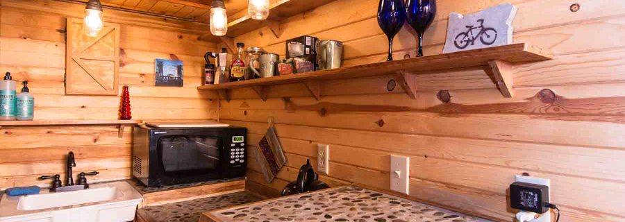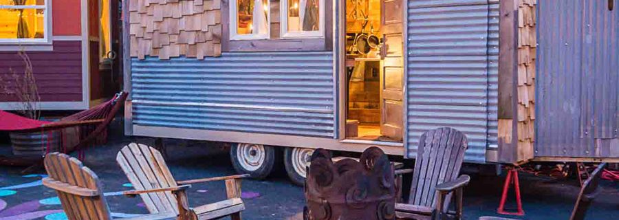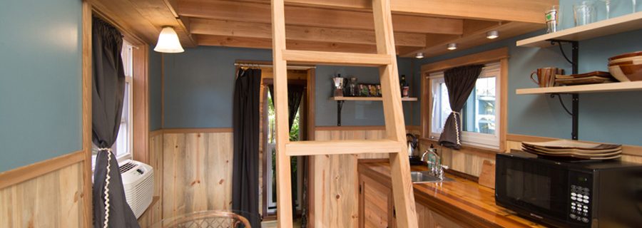 A tiny house that serves as guest accommodations in Portland, Oregon.