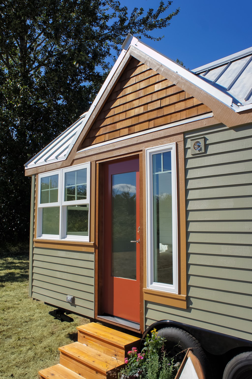 This house has the layout of the domed top Shepherd’s Hut, which I am in love with. It is interesting to see it in a beautiful traditional style exterior and roofline. Nicely appointed, and open and airy looking. Nice kitchen, great pantry……however in all of the 28′ I do not see a clothing closet or even a place to put folded clothing. What in the world does the owner do with his or her clothing and other necessaries that require storage??