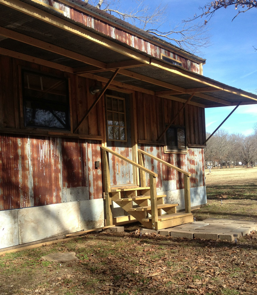 I’m adding that this house is full of creative touches that I love and remind me of the great Tiny Texas Houses. Including the tin, which, btw, has been used successfully in tiny bathrooms since Jay Schaefer was a pup. ; – )