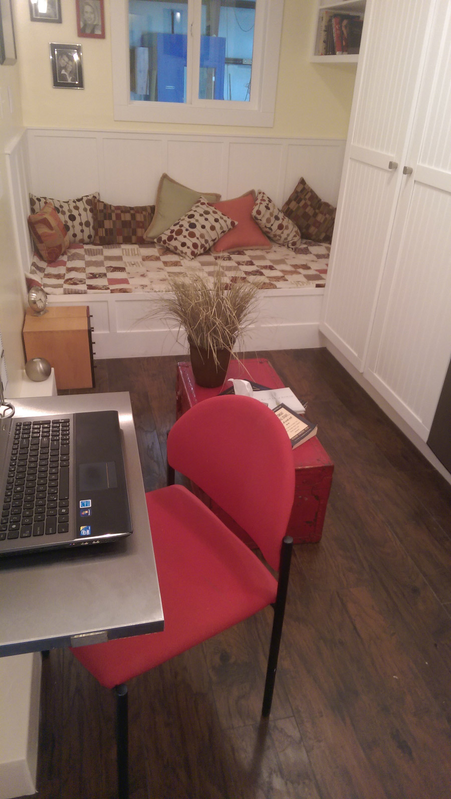 This is almost exactly what I’ve been wanting! It’s very hard to find these tiny homes with a door on the side of them instead of on the ends. I love the idea of the bed/couch on one end and the bathroom on the other. Much better than a loft 😀