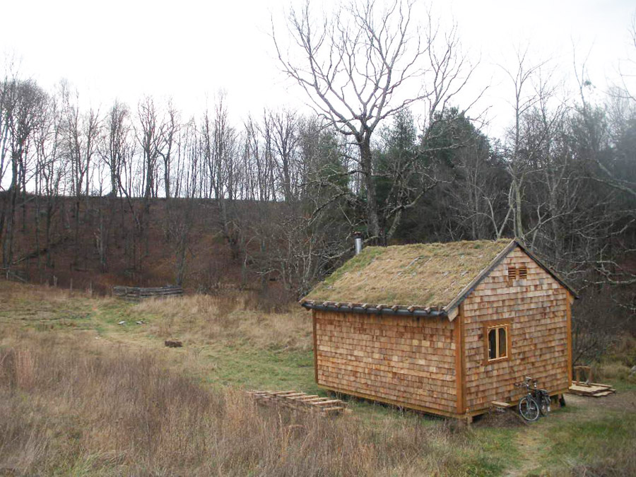 A 220 square feet off-grid cabin with green roof in Floyd, Virginia. More info. here.